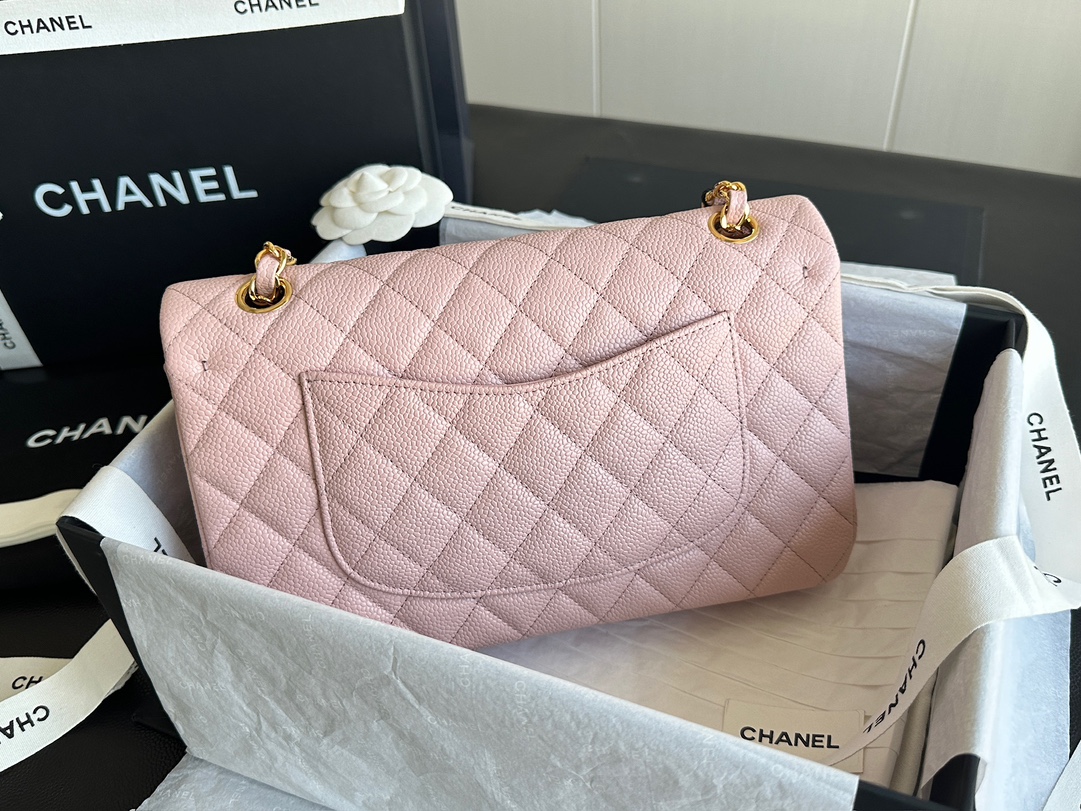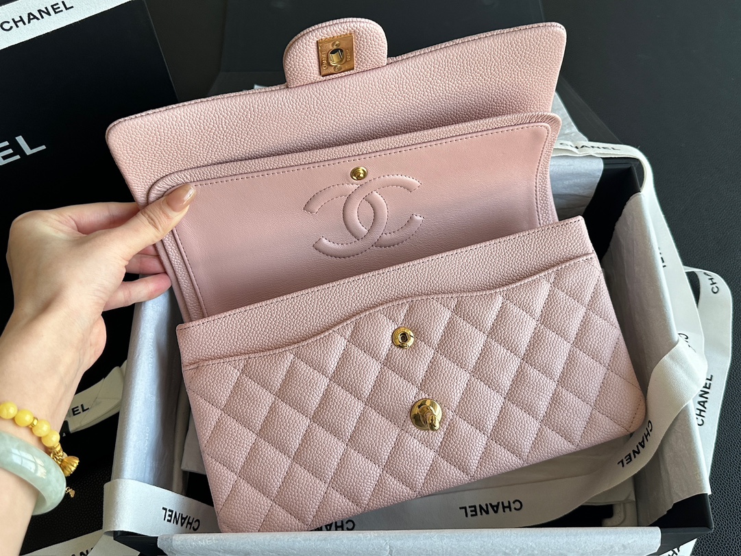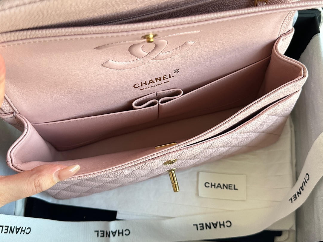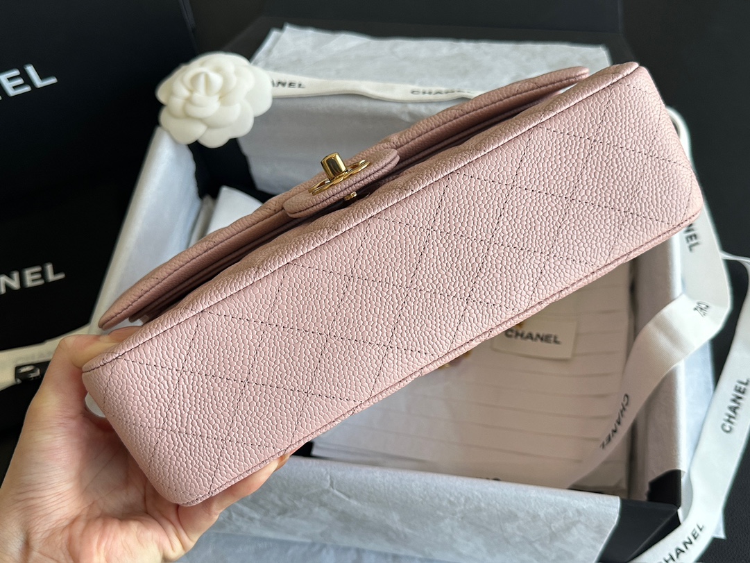 Ch@nel_Medium_Classic_Double_Flap_Bag_Light_Pink_Caviar_(15.5×25.5×6.5)