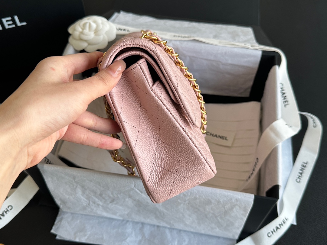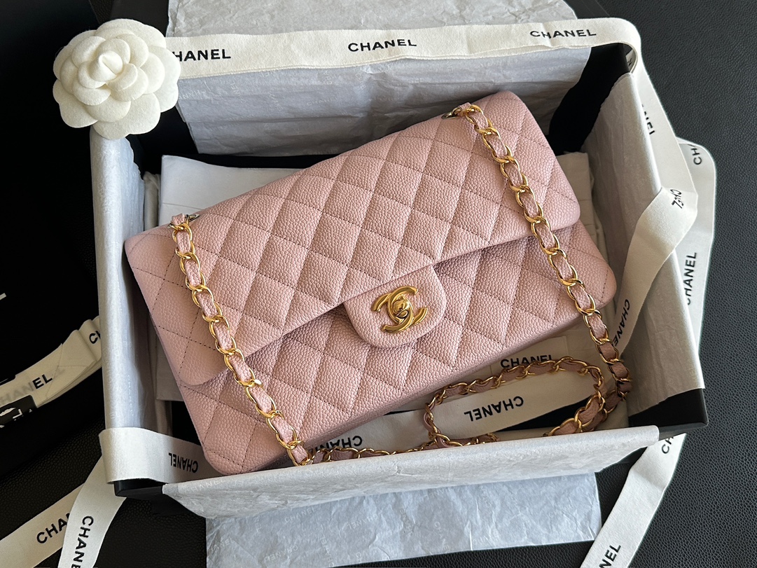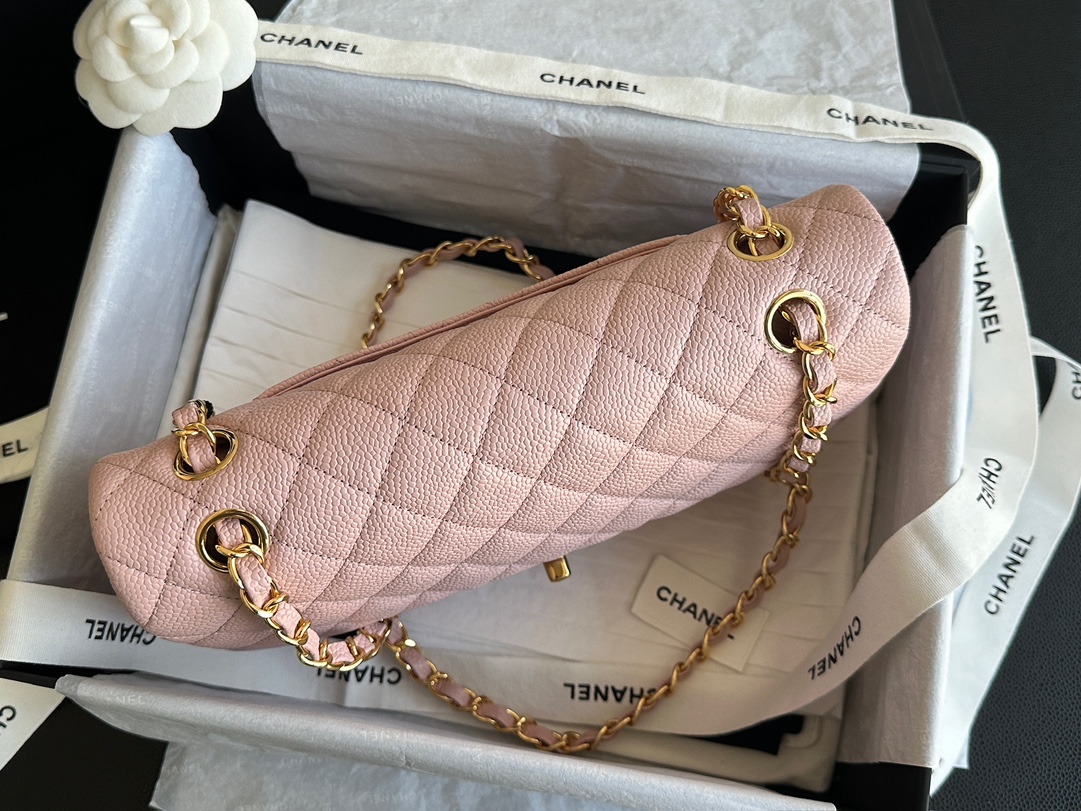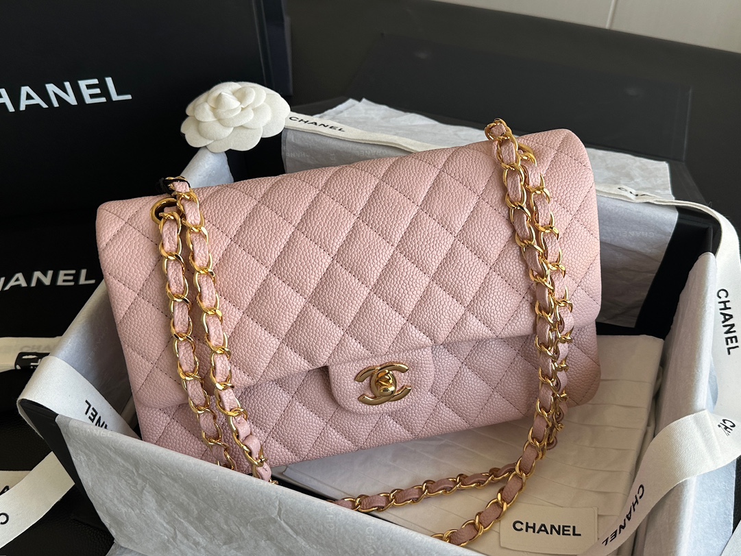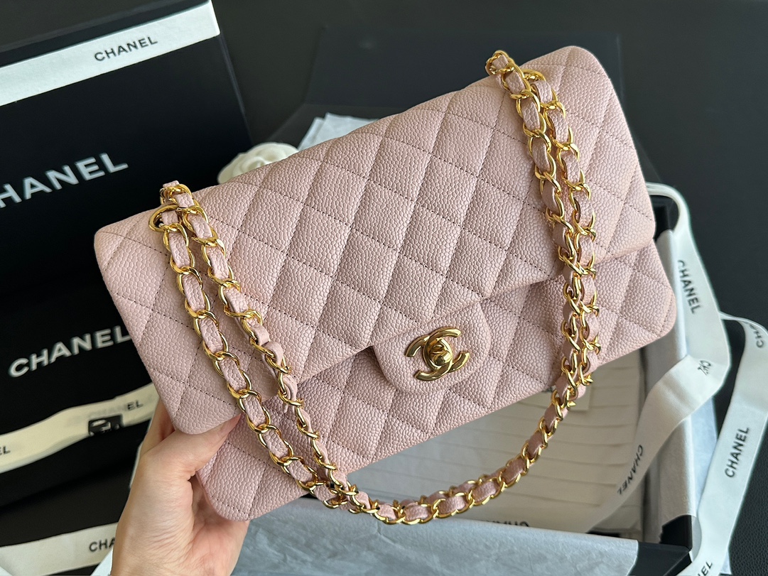 Ch@nel_Medium_Classic_Double_Flap_Bag_Light_Pink_Caviar_(15.5×25.5×6.5)